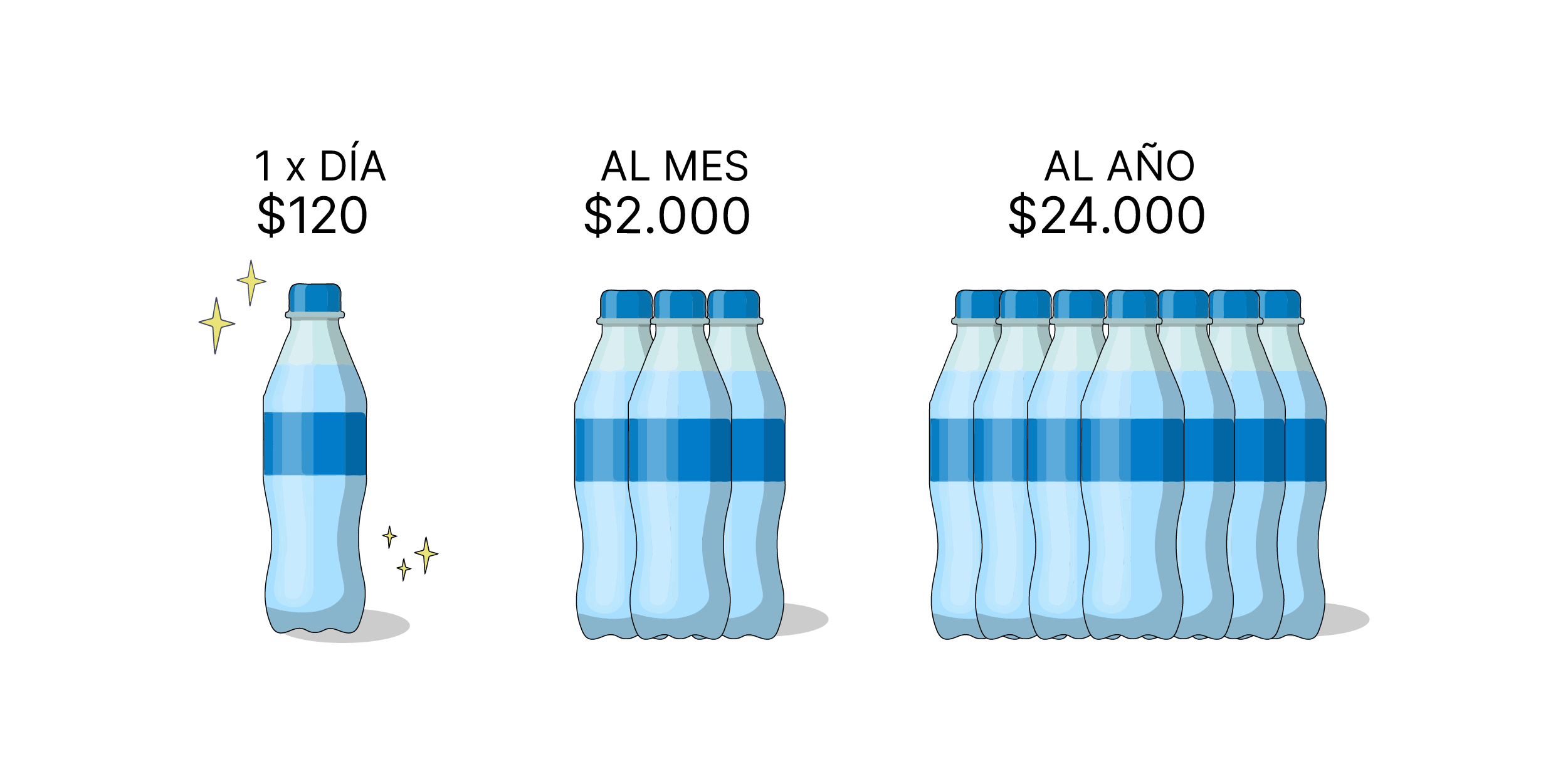 Digamos que todos los días salís del laburo y te compras una botellita de agua en la parada del colectivo que sale $120. Al mes gastaste $2.000, y al año $24.000. Una locura de presupuesto para gastar en botellas de agua, ¿no? Con esa plata te podés ir el finde a algún lugar muy bonito.