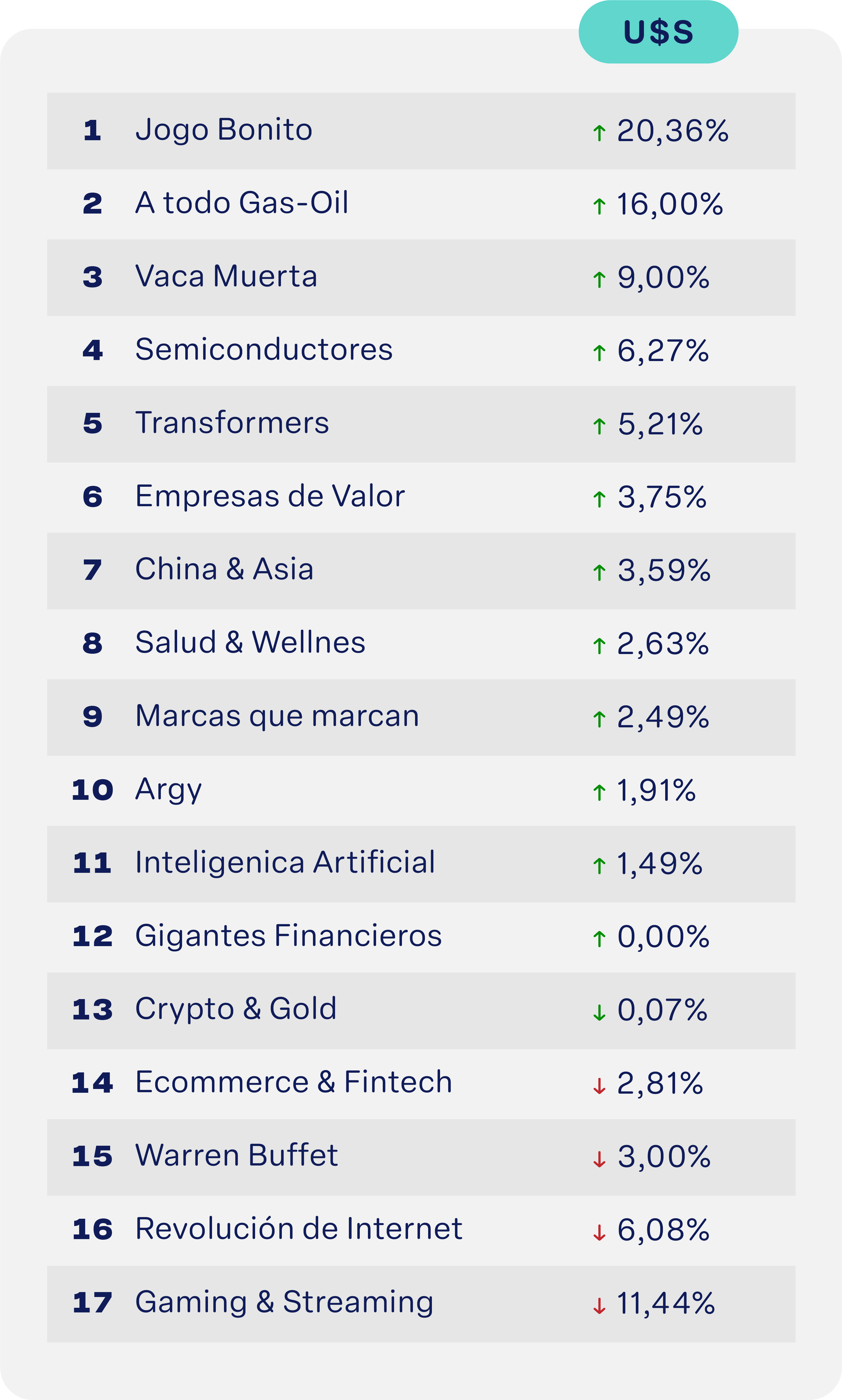 El sector energético argentino se mantiene entre los favoritos. Con un contexto de mayor estabilidad macro y foco en el orden fiscal, Vaca Muerta continúa siendo una apuesta estructural de largo plazo para el país.